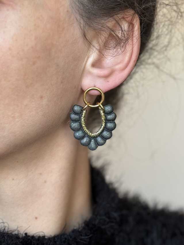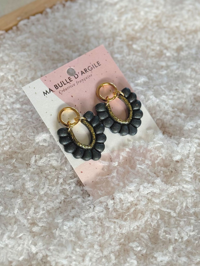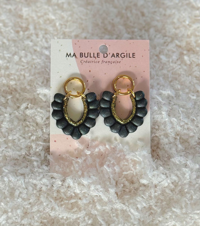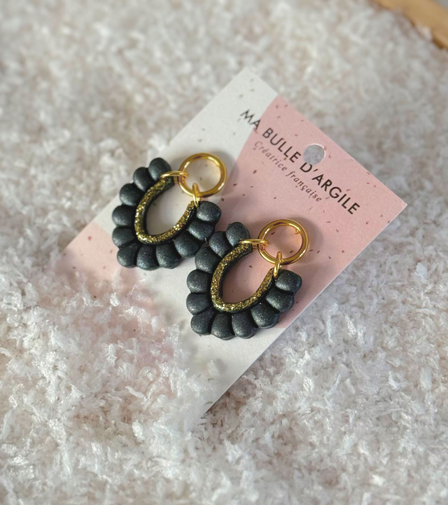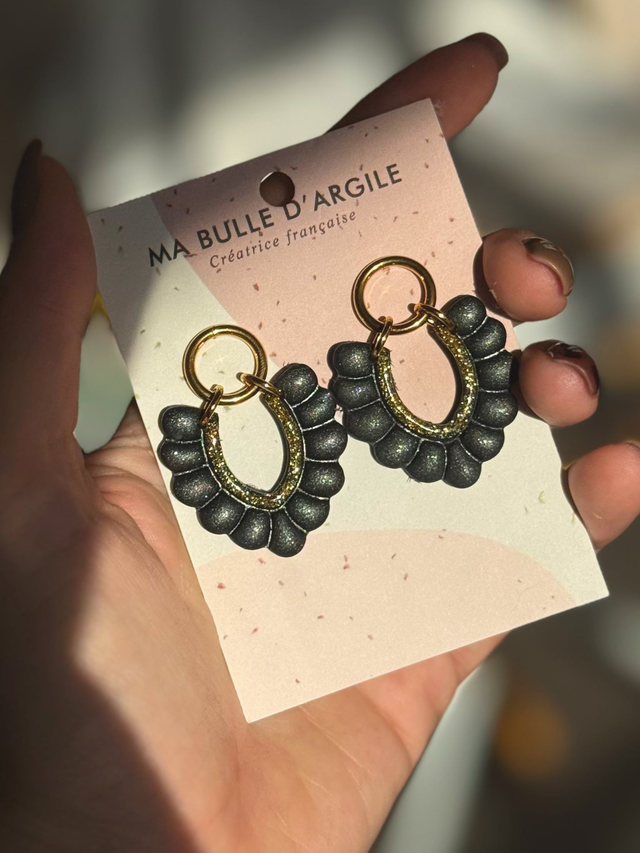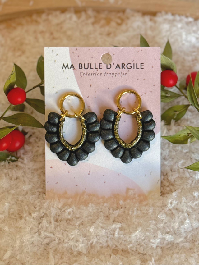 Modèle Lysia dans un noir pailleté avec un liseré pailleté doré finition résine