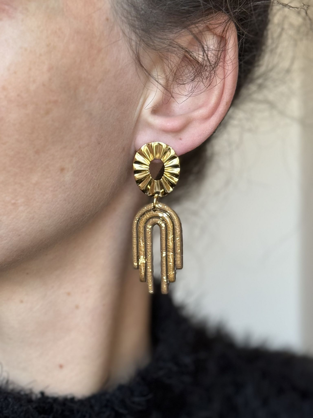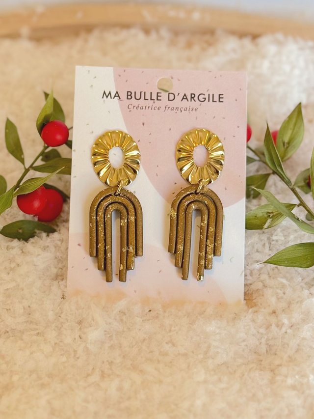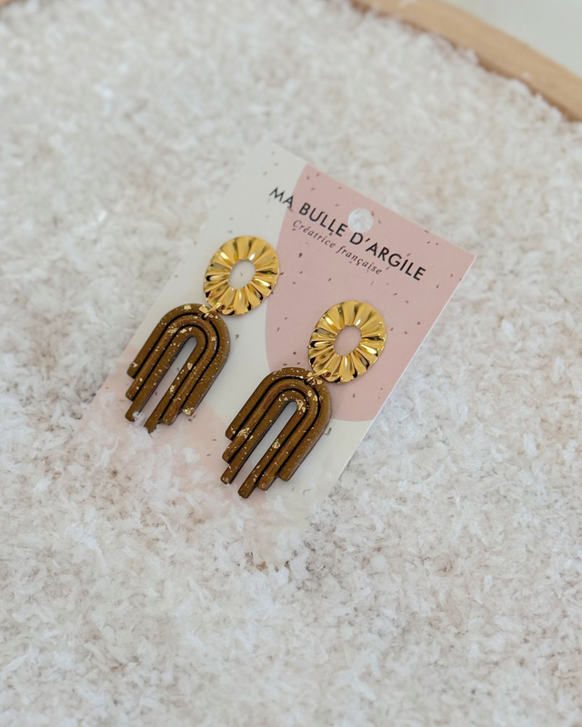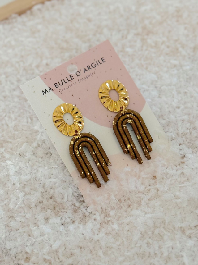 Ici il est décliné dans des tons bronze pailletés finement doré à la feuille d'or
