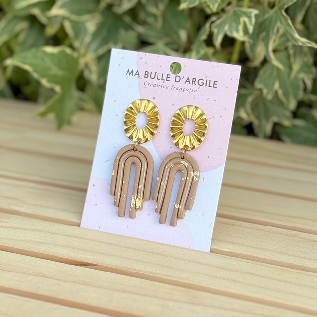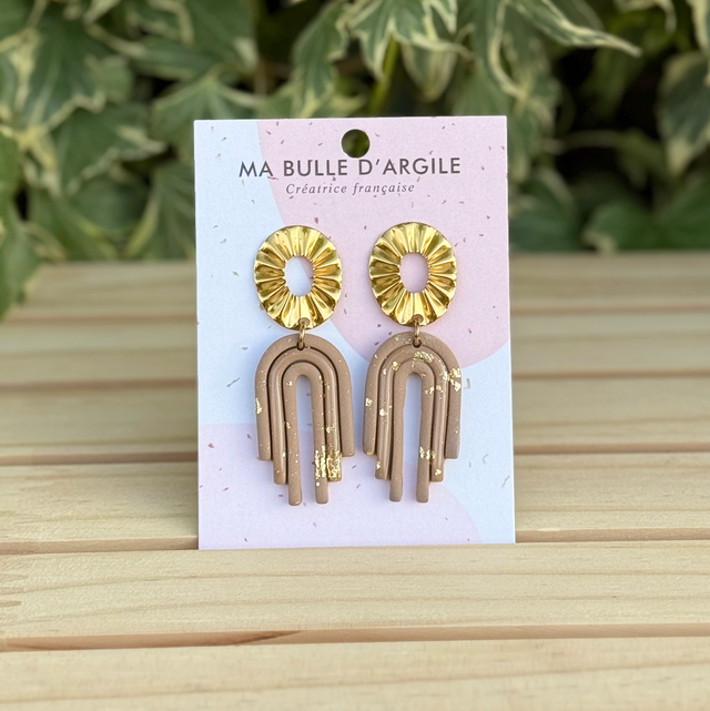Boucles d’oreilles modèle Mia en coloris taupe et or