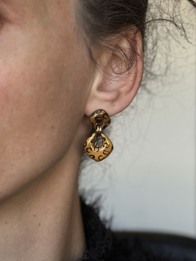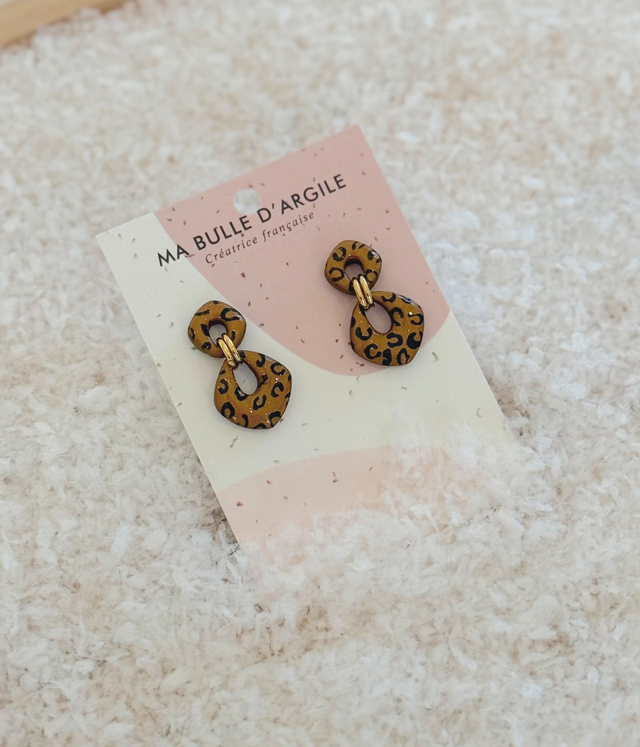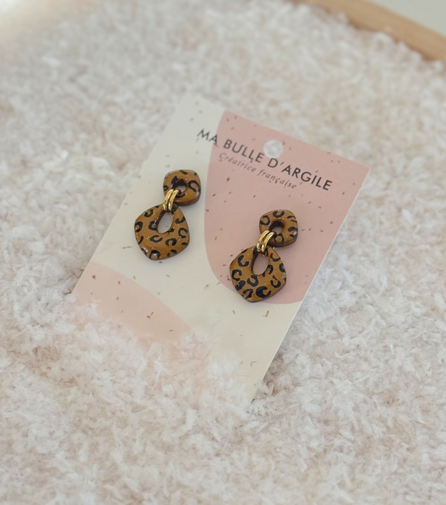 Modèle Olivia couleur léopard noir sur un fond bronze pailleté