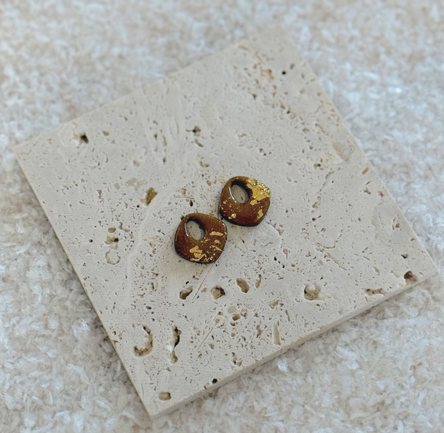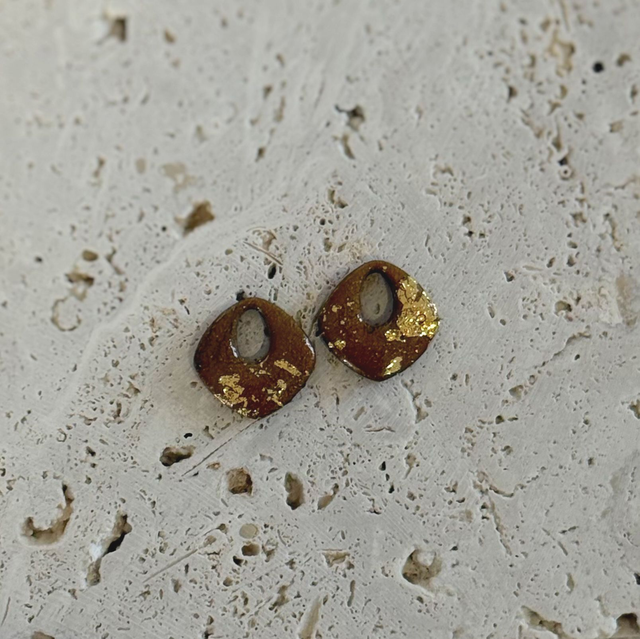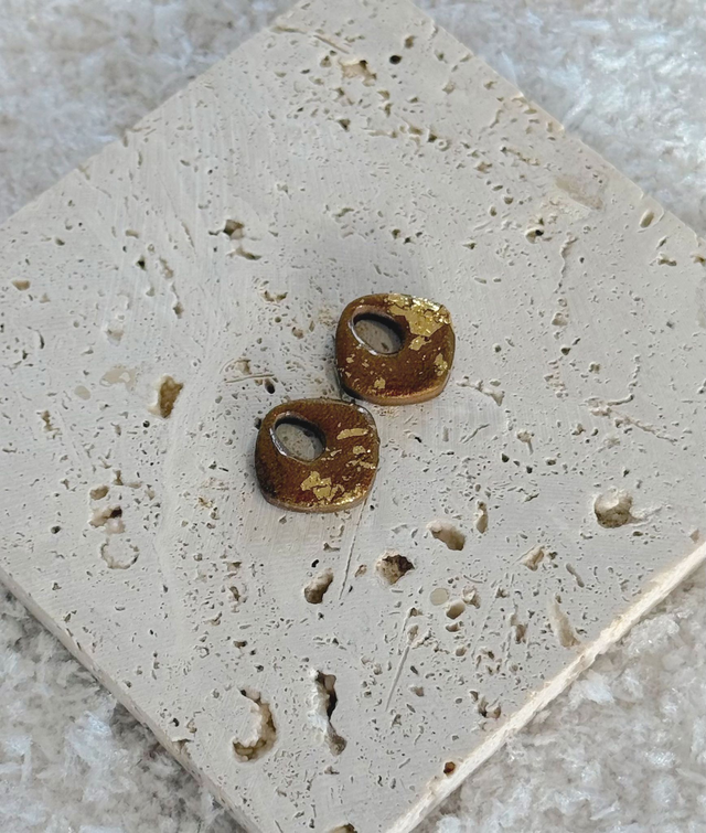 Pampilles rétro Olivia de couleur bronze pailleté, dorée à la feuille d'or avec une finition glaçage à la résine