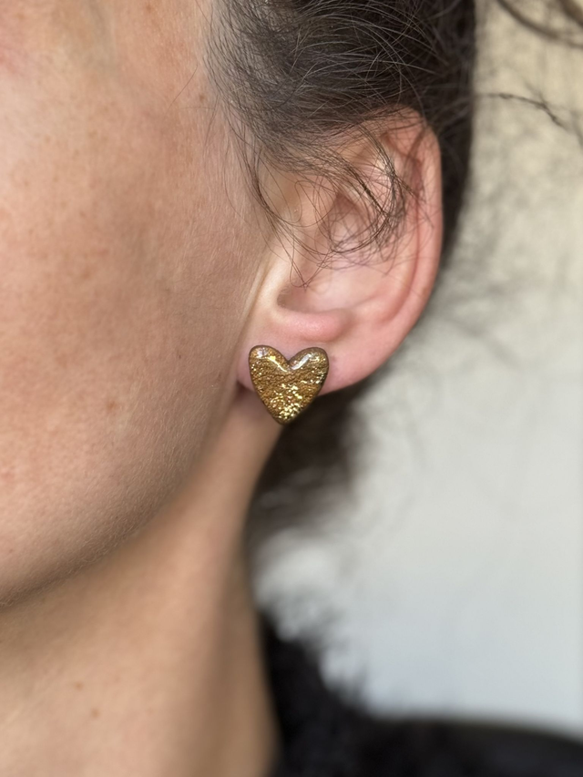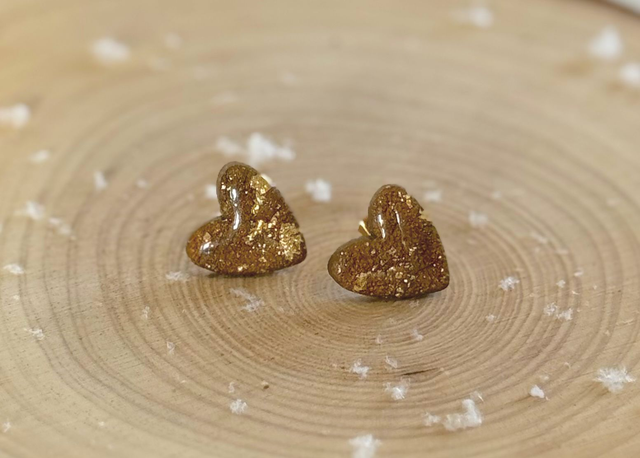 Puces cœur couleur bronze pailleté doré à la feuille d'or
